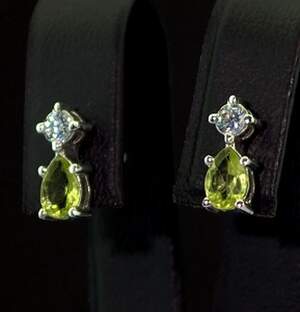 Серебряные серьги 925 пробы с позолотой 375 пробы 6,1 г с зелеными та белыми Фианитами 6,3 карат