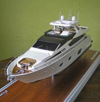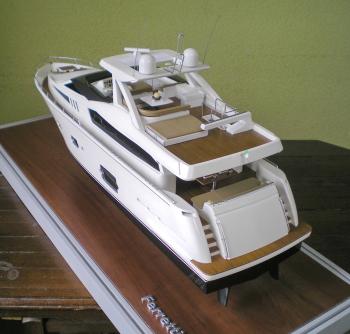 Маcштаб модели 1:34, длина 730 мм. При изготовлении корпуса и надстройки применялись акриловый пластик и полистирол, палуба набрана из грушевых реек, винты, леерное ограждение, якорь и швартовые изготовлены из латуни.